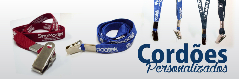 Produzidos em fio duplo de poliéster os cordões podem ser utilizados como porta crachás, credencias, para levar canecas e até mesmo celulares em eventos específicos. Trabalhamos hoje com larguras que variam de 12 mm a 15 mm e acabamentos variáveis, tanto em plástico como em metal.